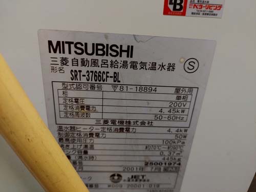 いすみ市今関 三菱電機自動風呂給湯電気温水器SRT-3766CF-BL→コロナ給湯器 給湯器交換工事