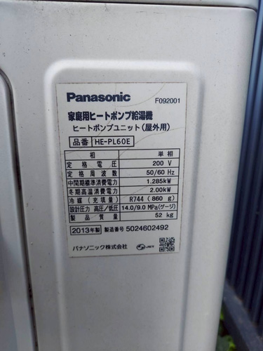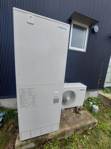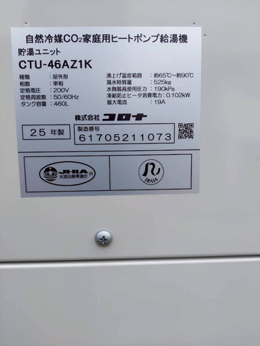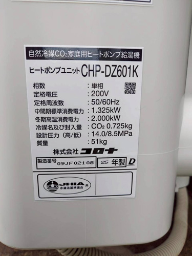 長生村入山津 パナソニック家庭用ヒートポンプ給湯機ヒートポンプユニット(屋外用)HE-PL60E→コロナ自然冷媒CO2家庭用ヒートポンプ給湯機ヒートポンプユニットCHP-DZ601K、貯湯ユニットCTU-46AZ1K エコキュート交換工事
