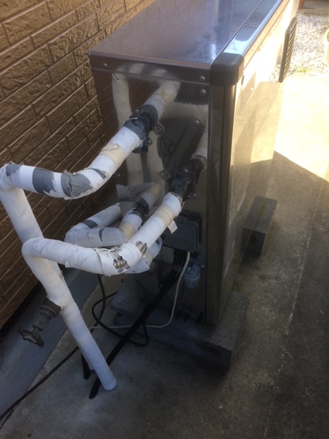 設置12年の据置型給湯器を同じく据置型のエコジョーズに交換。